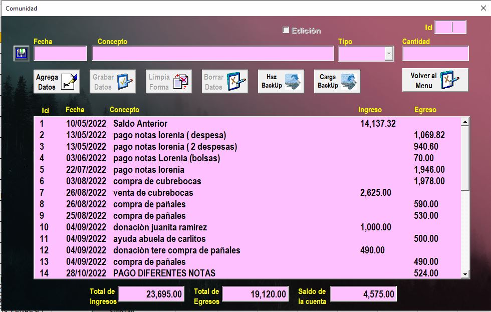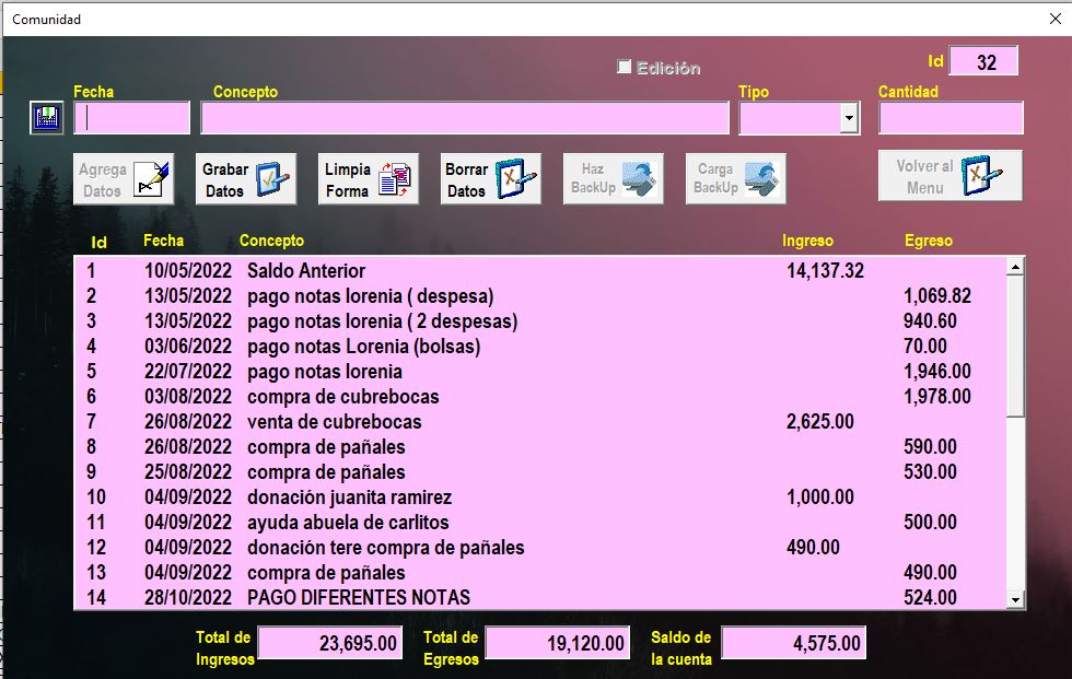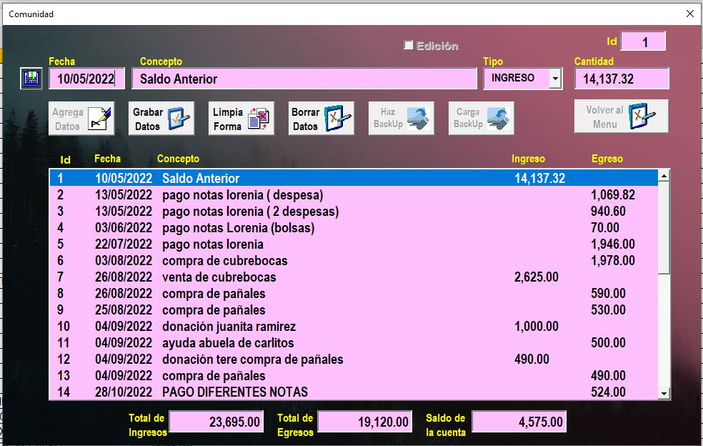 Al dar doble Click sobre cualquier socio, se cargaran los datos para su edición y se habilitaran las opciones de "Graba Datos", "Borrar Datos" y "Limpia Forma", quedando desabilitadas las opcines de respaldo.