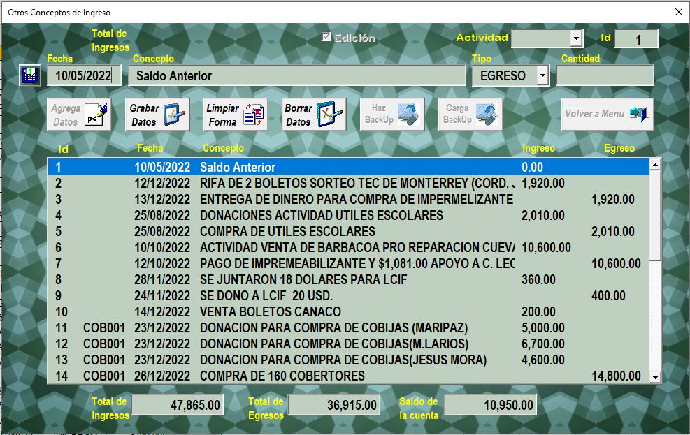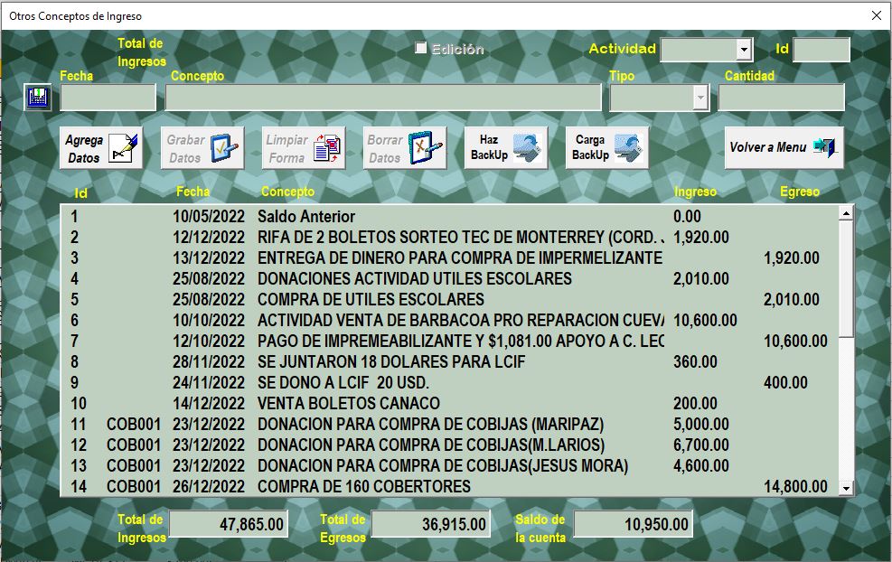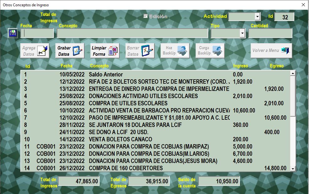 se habilitaran las opciones de "Graba Datos" y "Limpia Forma", quedando desabilitadas las opcines de respaldo.